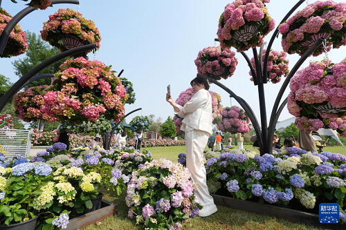 4月28日,人們在花園大會繡球展區(qū)參觀。(新華社記者 翁忻旸 攝)