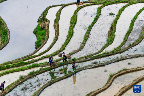 4月28日,村民在貴州省從江縣加榜梯田勞作。(新華社記者 楊文斌 攝)