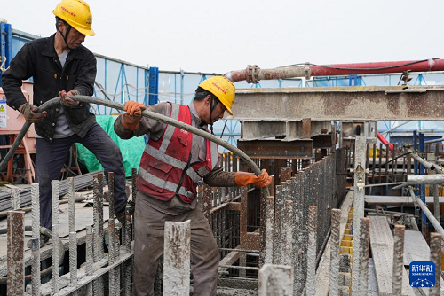 5月6日,中國鐵建大橋局建設(shè)者在雙嶼門特大橋六橫側(cè)進(jìn)行施工作業(yè)。(新華社記者 黃宗治 攝)