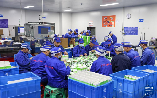 5月14日,工人在貴州省江口縣貴茶產(chǎn)業(yè)園抹茶生產(chǎn)車間包裝抹茶產(chǎn)品。(新華社記者 呂帥 攝)