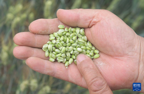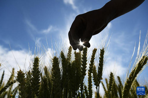 5月21日,農(nóng)戶在云南省麗江市玉龍納西族自治縣黃山街道的麥田里查看小麥長勢。(新華社發(fā) 趙慶祖 攝)
