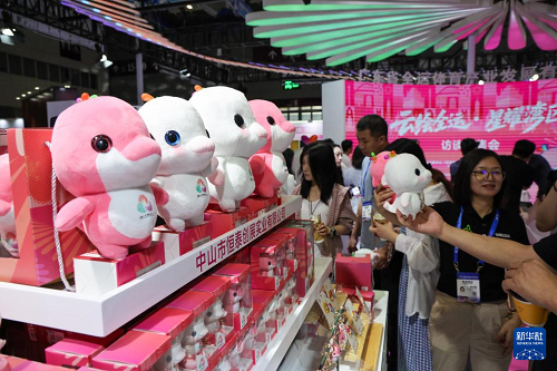 5月23日,觀眾在文博會(huì)現(xiàn)場(chǎng)選購第十五屆全運(yùn)會(huì)特許商品。(新華社記者 梁旭 攝)