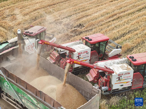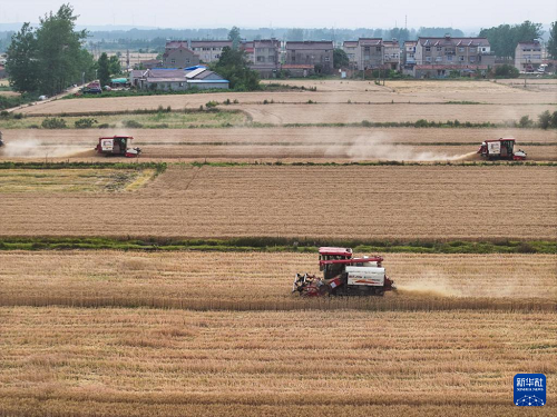 5月27日,江蘇省淮安市盱眙縣種糧大戶劉凱種植的近600畝小麥開鐮,田間地頭充滿豐收的喜悅。