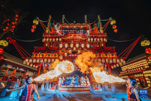 6月2日晚,演員在河北省唐山市豐南區(qū)河頭老街景區(qū)為游客演出。(新華社發(fā) 劉滿倉 攝)