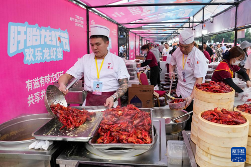 6月12日,第25屆盱眙龍蝦節(jié)歡樂(lè)龍蝦宴在江蘇省淮安市盱眙縣龍蝦節(jié)廣場(chǎng)舉行。為期三天的龍蝦宴預(yù)計(jì)消費(fèi)100噸小龍蝦。目前,盱眙縣有21萬(wàn)人從事小龍蝦產(chǎn)業(yè),小龍蝦養(yǎng)殖面積98.5萬(wàn)畝。