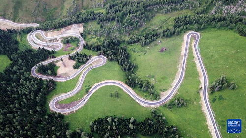這是7月2日拍攝的新疆阿禾公路上(無人機(jī)照片)。(新華社記者 張嘯誠 攝)