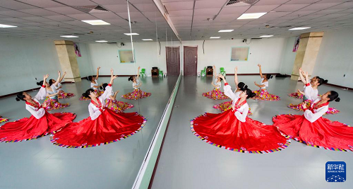 7月27日,在河北省遵化市一家舞蹈培訓(xùn)學(xué)校,學(xué)生練習(xí)舞蹈動(dòng)作。(新華社發(fā) 劉滿倉 攝)