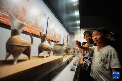 7月27日,在山東省青島市市北區(qū)青島市博物館,上海路小學(xué)的學(xué)生參觀展覽。(新華社發(fā) 王海濱 攝)