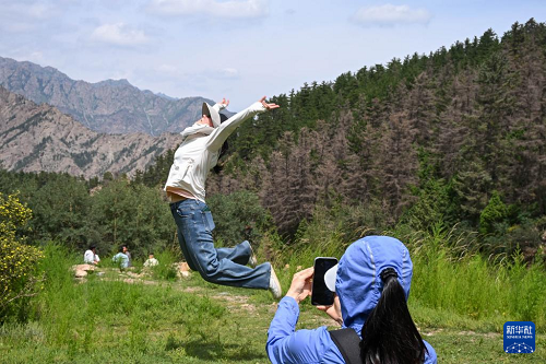 夏日時節(jié),寧夏賀蘭山國家森林公園植被茂密,氣溫適宜,吸引眾多游客前來避暑休閑。