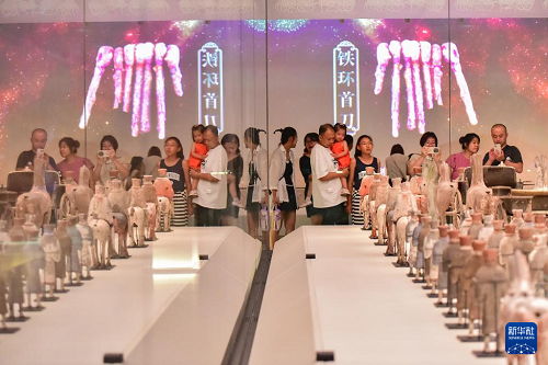 8月2日,家長(zhǎng)帶著小朋友在山東省青州博物館參觀。(新華社發(fā) 王繼林 攝)