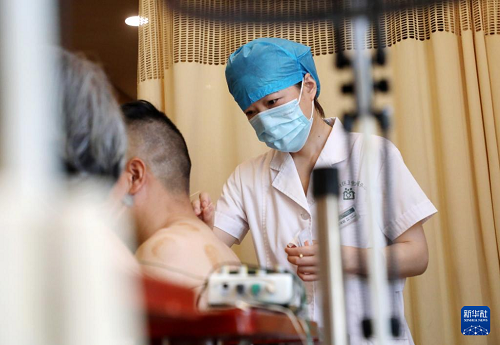 8月18日,山東省棗莊市婦幼保健院的醫(yī)生為患者針灸。(新華社發(fā) 孫中喆 攝)
