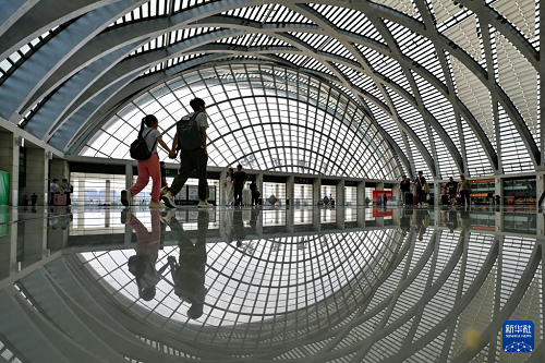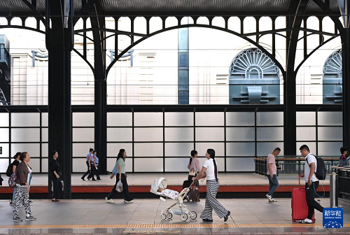 8月31日,旅客從哈爾濱火車站出站。(新華社發(fā) 原勇 攝)