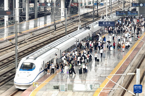 8月31日,旅客在江蘇常州火車站乘車出行(無人機照片)。(新華社發(fā) 陳暐 攝)