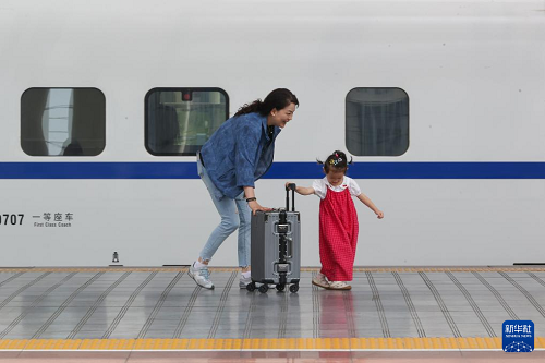 8月31日,在江蘇無錫火車站,家長帶著孩子準(zhǔn)備乘車。(新華社發(fā) 朱吉鵬 攝)