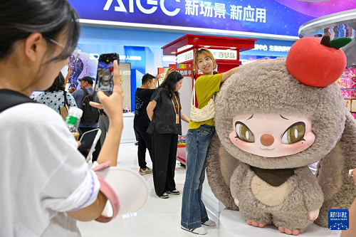 9月10日,參觀者在服貿(mào)會文旅服務(wù)專題展上拍照留念。(新華社記者 李鑫 攝)