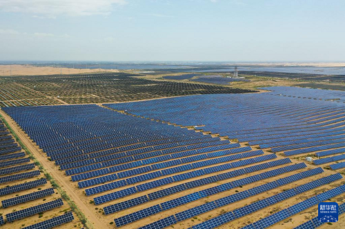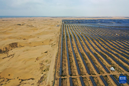 內(nèi)蒙古鄂爾多斯市達(dá)拉特旗境內(nèi)的庫布其沙漠里,一塊塊藍(lán)色光伏板鱗次櫛比、鋪陳排開,將沙海變成綠能涌動(dòng)的“藍(lán)?!?。近年來,達(dá)拉特旗依托光伏基地建設(shè),推廣應(yīng)用“光伏治沙”模式,實(shí)現(xiàn)光伏板上發(fā)綠電,板下治理沙漠生態(tài),既帶動(dòng)新能源產(chǎn)業(yè)發(fā)展,也促進(jìn)庫布其沙漠治理。