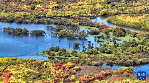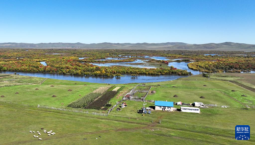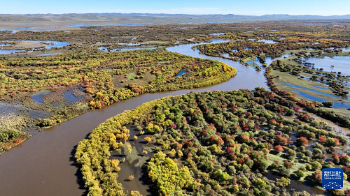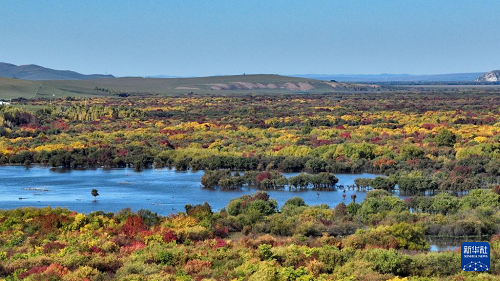 時下,內(nèi)蒙古額爾古納濕地迎來秋日盛景,多彩的灌木叢點綴其間,蜿蜒的河流如藍絲帶般靜靜流淌,宛若大自然打翻的調(diào)色盤。