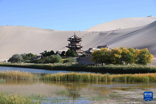 金秋時(shí)節(jié),甘肅省敦煌市鳴沙山月牙泉景區(qū)景色如畫,眾多游客徜徉其中,感受大漠風(fēng)情。