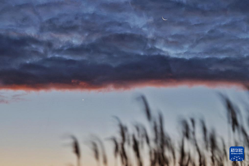 10月20日在黑龍江省齊齊哈爾市拍攝的啟明星伴月。(新華社發(fā) 王勇剛 攝)
