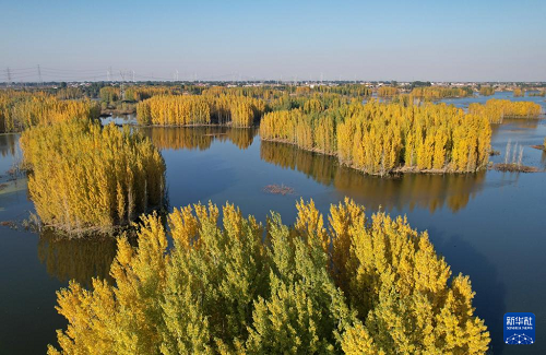 初冬時(shí)節(jié),在河北省邢臺(tái)市隆堯縣亦城村泜河沿岸,樹葉金黃,與水面、河岸相映襯,勾勒出一幅美麗和諧的自然畫卷。