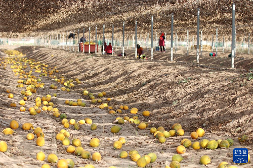 12月7日,在連云港市灌云縣楊集鎮(zhèn)利華村,村民收獲成熟的瓜蔞。(新華社發(fā) 吳正祥 攝)