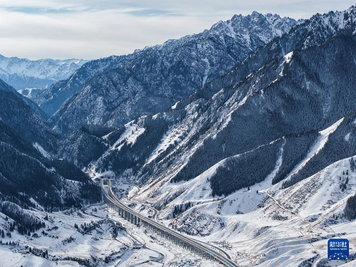 這是新疆烏尉高速公路前峽1號隧道及附近路段(12月20日攝,無人機(jī)照片)。(新華社記者 胡虎虎 攝)