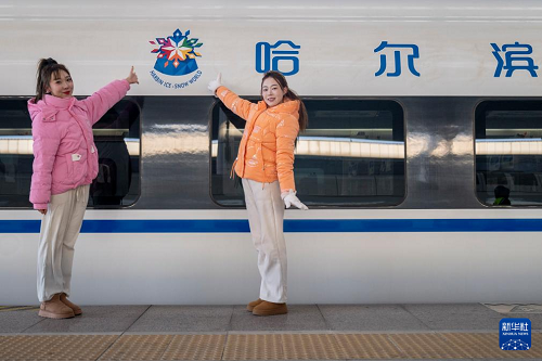 1月4日,首列“哈爾濱冰雪大世界”主題高鐵列車G1276在哈爾濱西站正式開(kāi)行,駛向終點(diǎn)站武漢。據(jù)悉,“哈爾濱冰雪大世界”主題高鐵列車內(nèi)外遍布冰雪大世界相關(guān)元素,成為流動(dòng)的名片,助力冰雪經(jīng)濟(jì)融合升溫。