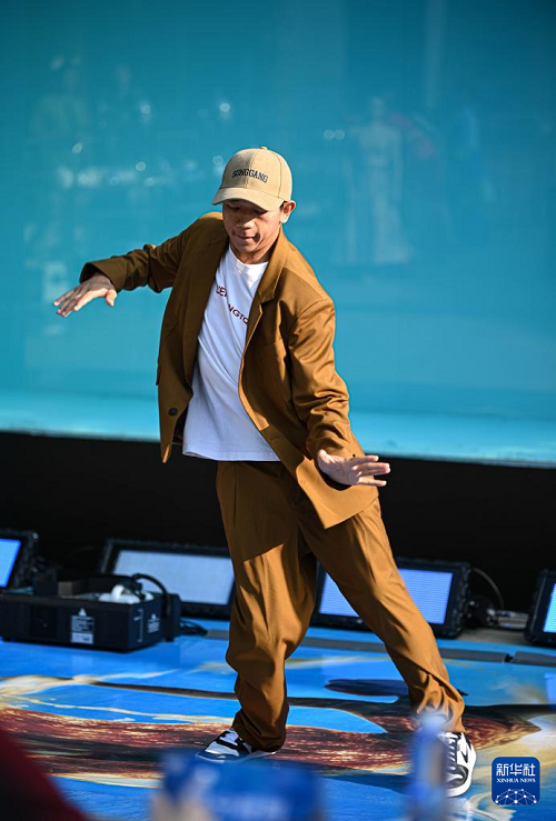 1月14日,參賽選手進行陸地極限舞蹈表演。(新華社記者 蒲曉旭 攝)