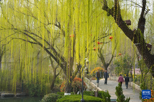 近日,山東省濟(jì)南市氣溫回升,大明湖畔的柳樹(shù)披上新綠,吸引游客前來(lái)踏春游覽。大明湖位于濟(jì)南市區(qū),湖岸種有大量柳樹(shù),以“四面荷花三面柳,一城山色半城湖”的風(fēng)光聞名。