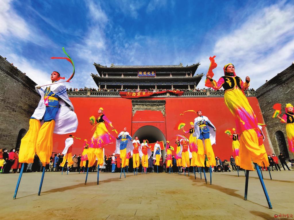 定襄社火和各類傳統(tǒng)民俗活動歷史悠久,各類極具地方特色的民俗文化活動觀賞性很強(qiáng),二兔藝術(shù)團(tuán)盡情舞動,表情歡悅;老干部藝術(shù)團(tuán)鶴發(fā)童顏,精神抖擻;夢之藍(lán)旗袍隊(duì)舉止高雅,體態(tài)大方;紅燈籠高蹺隊(duì)腳踏雙木,輕松自如……有趣的互動,讓大家樂在其中。喜慶的樂曲,歡快的表演,充分展現(xiàn)了人民群眾的新生活、新風(fēng)尚、新面貌,迎來觀眾一片喝彩聲,讓游客感受到了定襄的民俗文化魅力。(張存良 攝)