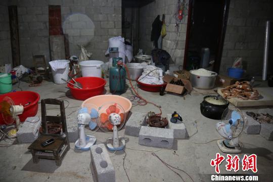 清晨6時(shí),隨著現(xiàn)場(chǎng)指揮長(zhǎng)的一聲令下,在山林里潛伏數(shù)小時(shí)的抓捕組民警直沖制毒窩點(diǎn),將正在制造毒品的8名犯罪嫌疑人抓獲。