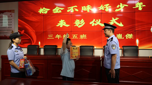 近日,河曲縣公安局民警帶著感謝信和獎品走進(jìn)黃河路小學(xué),為拾金不昧的王同學(xué)舉行了一場特別的“頒獎儀式”,用滿滿的儀式感鼓勵同學(xué)們大力弘揚(yáng)社會正能量。