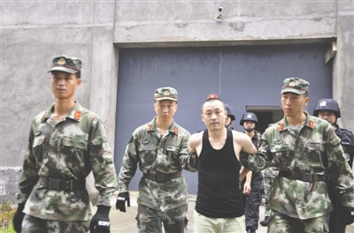 劉曉輝在法警的押解下走出看守所大門