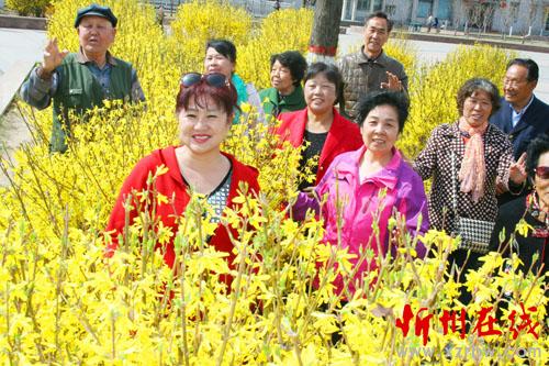 大地回春,萬(wàn)物吐新,姹紫嫣紅 迎春花開。4月2日,原平市北城社區(qū)的老年人們一起正在金燦燦的迎春花花叢里歡歌笑語(yǔ),享受著濃濃的春意。他們歌唱新生活放歌而陶醉 。(趙春曉 攝)