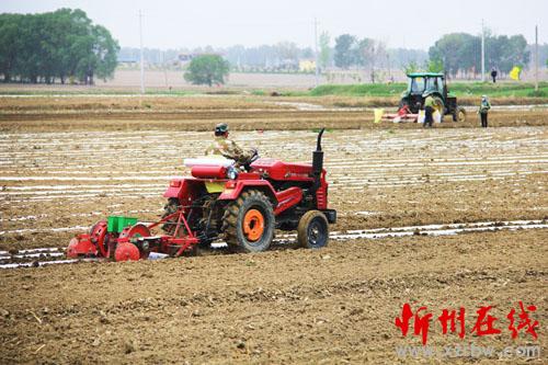 滹沱河畔農(nóng)民播種忙