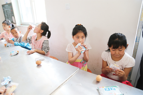 6 月23 日,靜樂縣中莊鄉(xiāng)中莊村小學學生正在吃領(lǐng)到的“營養(yǎng)餐”。截至目前,該縣共有4所初中、32 所小學、40 個教學點的2391 名中小學生每天均可享受到農(nóng)村義務教育“營養(yǎng)餐”所帶來的溫暖。(閆曉梅 攝)