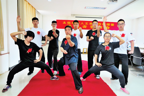 王來根對記者說:“中國太極功夫根在民間,作為民間拳師,當(dāng)我看到新入門的弟子勤學(xué)苦練的時候,當(dāng)我看到中國功夫受到高等學(xué)府和高層次人群重視的時候,我感覺自己多年來在傳拳授道方面的付出是值得的,中國功夫在民間永遠(yuǎn)不會失傳?!?span style="font-family: 楷體,楷體_gb2312, simkai">圖為王來根師傅與弟子展演武術(shù)(魯明強(qiáng))