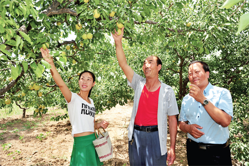 夏至?xí)r節(jié),代縣胡峪鄉(xiāng)望臺村的1500 畝白水杏喜獲豐收,果農(nóng)們正在起早貪黑收獲勞動果實,并通過代縣惠生活微信平臺推銷產(chǎn)品。該村作為全縣干鮮果經(jīng)濟林基地,尤其盛產(chǎn)優(yōu)質(zhì)白水杏,去年全村僅干鮮果一項就收入640 萬元,人均純收入6000 余元,真正實現(xiàn)了“杏”福敲門,精準(zhǔn)脫貧。(石俊文 劉睿 攝)