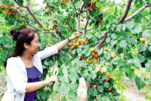 6 月22 日,在原平市子干鄉(xiāng)停旨頭村栗文田經(jīng)營的“農(nóng)家樂”采摘園中,游客正在采摘?jiǎng)倓偝墒斓拇簏S杏。近年來,原平市大力發(fā)展觀光農(nóng)業(yè),促進(jìn)農(nóng)民增收致富,今年黃杏、油桃、酥梨、駿棗又獲豐收,迎來一批批游客。(曹申義 攝)