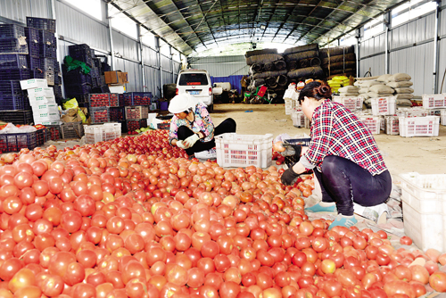 6 月22 日,定襄縣受祿鄉(xiāng)富達(dá)農(nóng)業(yè)合作社的農(nóng)戶(hù)們將采摘的西紅柿裝筐準(zhǔn)備外銷(xiāo)。近年來(lái),定襄縣立足自然資源優(yōu)勢(shì),積極引導(dǎo)農(nóng)民調(diào)整產(chǎn)業(yè)結(jié)構(gòu),大力發(fā)展設(shè)施農(nóng)業(yè),促進(jìn)了農(nóng)業(yè)增效、農(nóng)民增收。(張玉虎 攝)