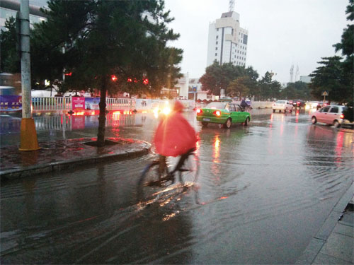 7月19日暴雨中的長(zhǎng)征西街(許凈 攝)
