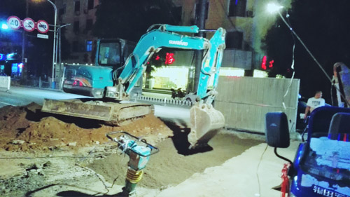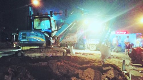 7月26日晚上9多了,原平市政公司干部職工仍然在京原北路與平安大街交匯的十字路口搶修塌陷的路面。該路段是原平的交通要道,車流量大。路面塌陷后,時政公司及時安排連夜切段搶修,不誤車輛通行,把“真抓實(shí)干,馬上就辦”體現(xiàn)在實(shí)際行動中。(吉建平 攝)