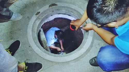 原平市政公司連夜搶修塌陷路面