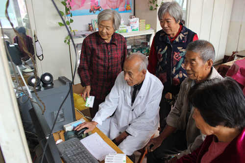 來到北義井村衛(wèi)生所,不足20平米的診療室里已經(jīng)站滿了患者。醫(yī)師張喜旺向高血壓病人李梅蘭詢問病情后又為其測量了血壓。緊接著,他打開區(qū)域衛(wèi)生信息管理平臺,拿著農(nóng)村合作醫(yī)療卡在刷卡機上一刷,信息就自動提取到平臺,張喜旺結合病人病情開了電子門診處方并下藥,費用直接從農(nóng)合醫(yī)療卡中扣除,整個過程不到十分鐘。張喜旺說,村民們大都都是奔著診療方便和藥品范圍內(nèi)免費而來,這也大大緩解了村民看病難的問題。