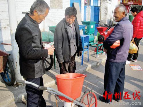 十一月十七日是河曲縣巡鎮(zhèn)趕集日,十里八鄉(xiāng)的農(nóng)民紛紛趕來(lái)選購(gòu)小型農(nóng)機(jī)具。近年來(lái),該縣農(nóng)民在農(nóng)機(jī)具購(gòu)置補(bǔ)貼政策鼓勵(lì)下,購(gòu)買(mǎi)農(nóng)機(jī)熱情高漲,極大地提高了農(nóng)業(yè)生產(chǎn)效率。圖為農(nóng)民正在購(gòu)買(mǎi)播種機(jī)。(賈金理 攝)