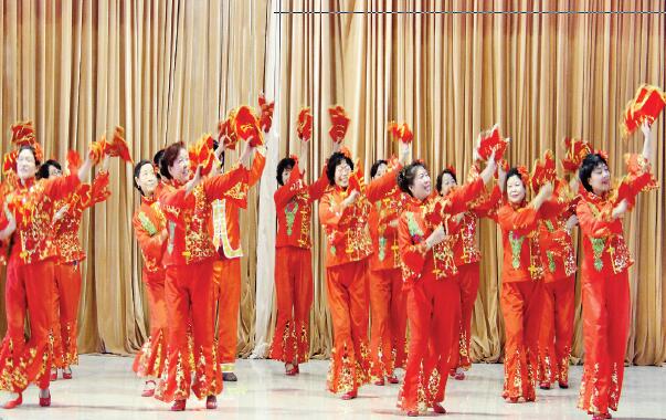 近日,原平市舉行群眾新年文藝聯(lián)歡活動(dòng),來自社區(qū)、鄉(xiāng)村、小區(qū)的25支群眾文藝社團(tuán)通過大合唱、廣場(chǎng)舞、雙人舞、扇子舞、男女聲二重唱、戲曲、旗袍秀、秧歌舞、拉丁舞、水兵舞等多種多樣的表演形式,齊頌祖國好,齊夸祖國興旺發(fā)達(dá)的喜人局面和人民幸福安康的好光景。圖為北城京原社區(qū)舞蹈隊(duì)正在表演廣場(chǎng)舞《紅紅火火大中華》(藺紅 褚震 攝)