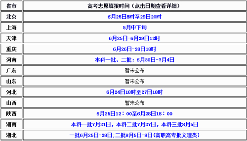 全國各省市2016年高考志愿填報時間匯總