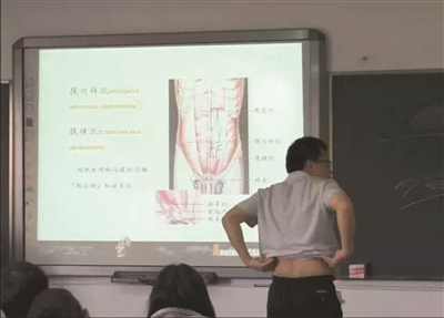 “老師,你知道你火了嗎?網(wǎng)上全是你的解剖動作展示,還有你寫在手臂上的肌肉名稱?!弊罱暇┽t(yī)科大學(xué)師生“朋友圈”被解剖學(xué)教師李雷的“清涼照片”刷屏。照片中,李雷撩起衣服,以身體為道具向?qū)W生講解各個部位及肌肉名稱。揚子晚報記者聯(lián)系上李雷,他哈哈一笑:“現(xiàn)在最火的是我的學(xué)生紫薇,她的‘蓋世麒麟臂’讓我震驚了!”