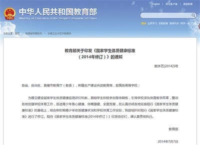 目前學校實行的相關體測標準依據(jù)的是2014年教育部印發(fā)的《國家學生體質健康標準》。 網(wǎng)絡截圖