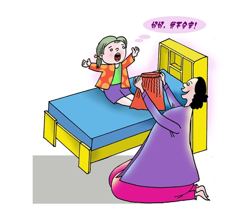 對(duì)于孩子不會(huì)做的事情,大人要教給他正確的方法,可以通過(guò)游戲的形式讓他完成,如將穿衣的方法編成一首兒歌,“抓領(lǐng)子,蓋房子,小老鼠,出洞子,吱溜吱溜上房子?!弊尯⒆釉诶世噬峡诘膬焊柚袑W(xué)會(huì)穿衣,以此調(diào)動(dòng)他動(dòng)手的興趣,更好地體驗(yàn)成功的快樂(lè)!